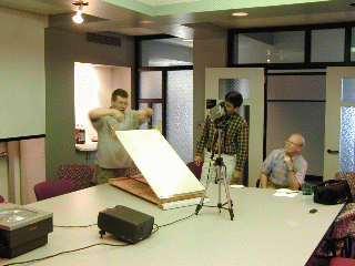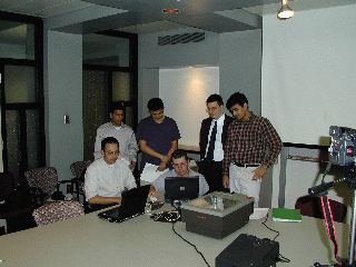 In the class project, one group of students was responsible for theoretical publications, performing the experiments and recording the results on a digital video camera. A second group focused on modeling and numerical simulation of the fluid flow. A third and fourth group were responsible for data extraction from the video, and their comparison with the theoretical predictions. The students results were presented in a Special Applied Math Seminar on May 4th, 2001 (see below). This project inspired future summer research project with one of the involved students (Rafal Turek), and a teaching/research publication in SIAM Review, available here.